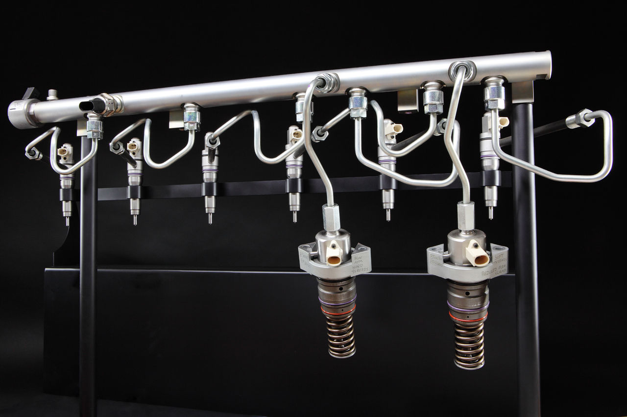 The ultra-high rail pressure is provided by a flexible number of separate pumping elements that can operate from either cam-in-block (F2P system) or cam-in-head (F2E system) engines.