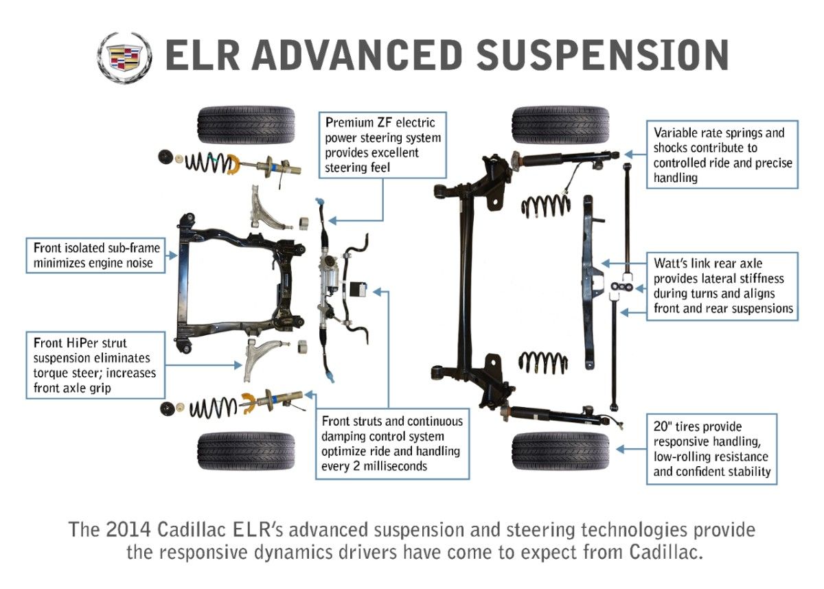 以前、シボレー・ボルトのキャデラック版と大雑把に紹介した”ELR”。そのエントリでも『アルミ鍛造パーツを使ったフロント・HIPERストラット、ワットリンクを採用したリア・サスペンション』については触れてはいましたが、あらためて構成パーツの画像を見かけて、再確認というかモロモロ再認識。