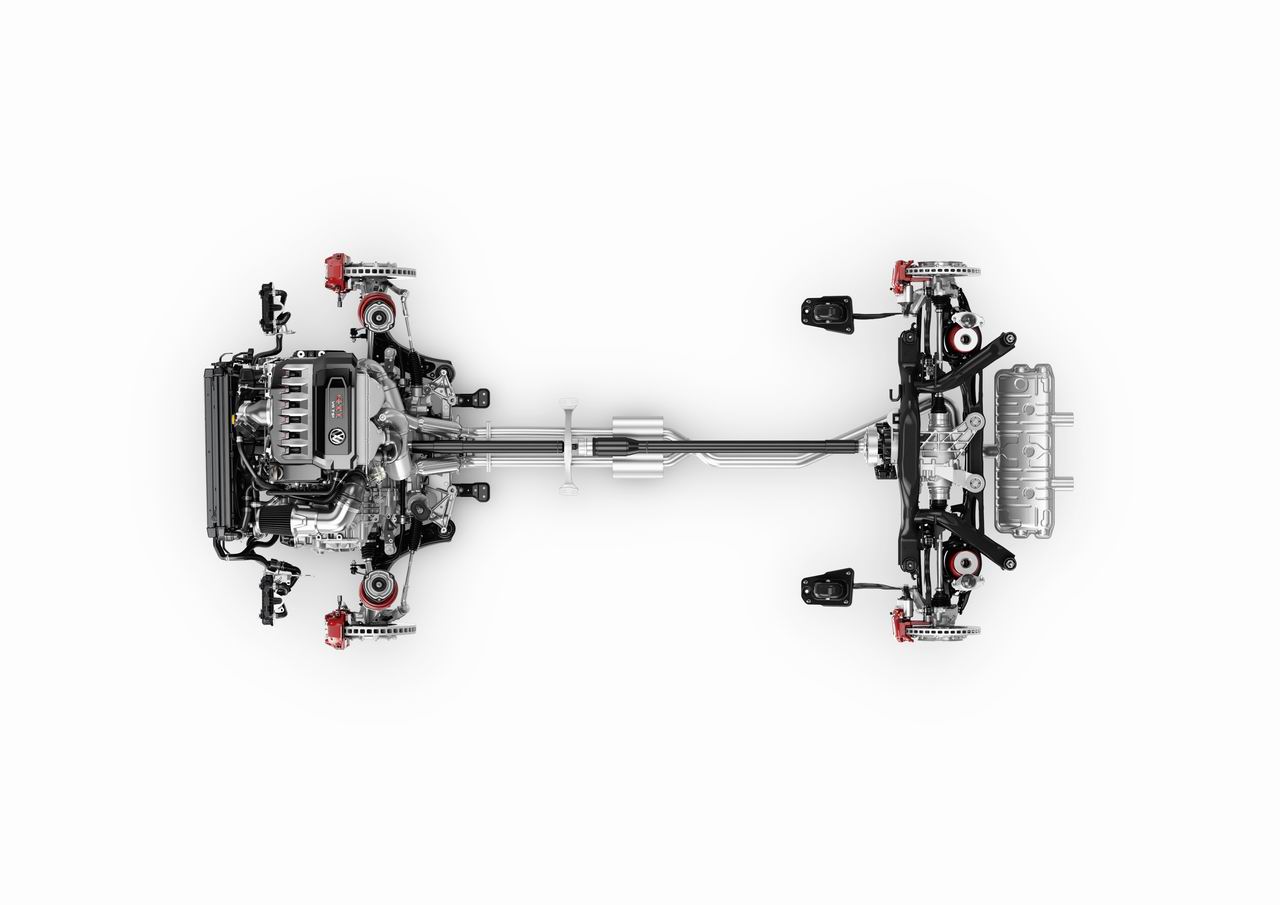そして、この『GTI ロードスター』のパワートレインを俯瞰で見せる画像を見ていて、しみじみ思うのは、横置きのV6エンジンが見事なまでにフロントオーバーハングに位置していること。
