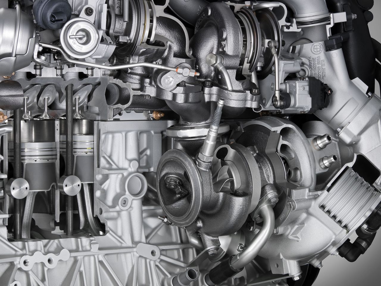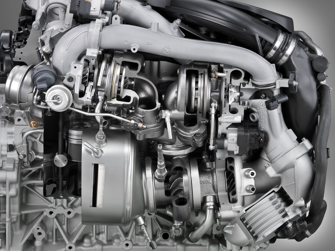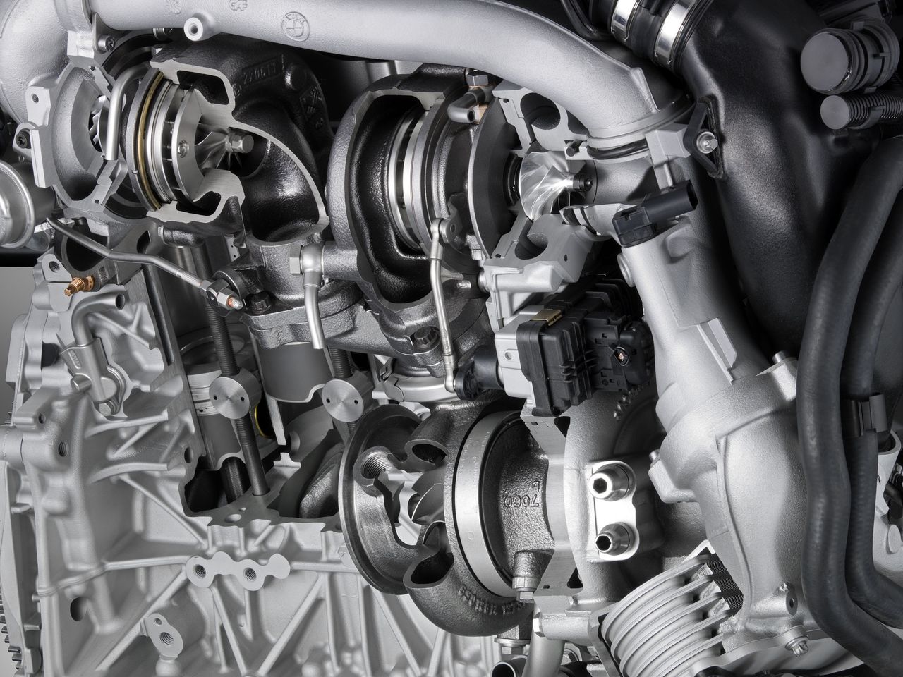 そんなわけで、トリプルターボ(BMW流にいえばスリー・ターボチャージャー)のカットモデルが、様々な角度から紹介された画像には興味津々。