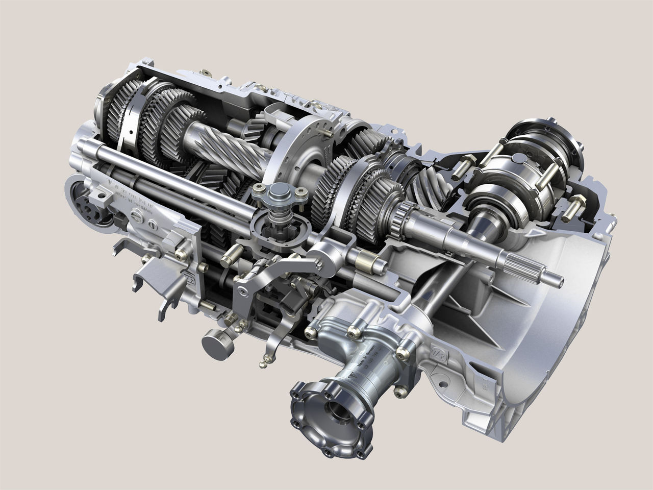 Since the 7-speed dual clutch transmission has a modular construction system, the 7-speed manual transmission could be designed with a lot of identical parts. However, there was one special challenge to tackle: At the dual clutch transmission, the gears are arranged differently compared to a standard H-type shift system, due to the differing concept. For this reason, ZF developed converted shifting actuators for the manual variant of the transmission. Like this, the classical H-type shift pattern could also be implemented with the dual clutch gearsets. At the same time, a patented system avoids incorrect gearshifts: The seventh gear, for instance, can only be engaged directly following the fifth or sixth gear.