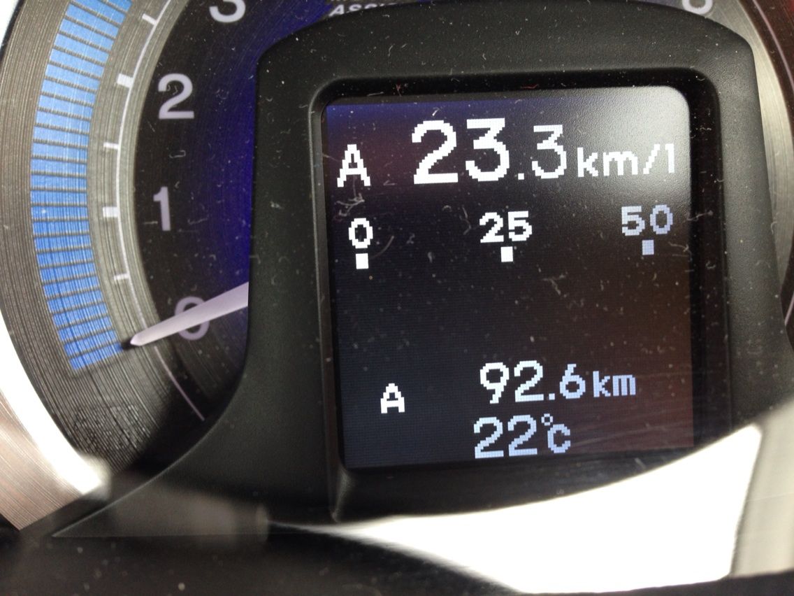 このくらいならモード燃費の9割前後の達成率になるので、まずまずといえるのでしょうが、とはいえ好条件であれば、やはりモード燃費越えを目指したいところ。