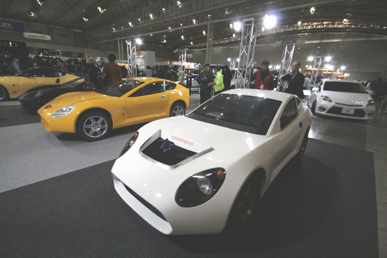 またカプチーノをベースにカーボンボディをのせたコンプリートカーを御殿場のブーメランが企画しているというのも興味深いところ。全幅が1400mm以上で、当時の軽自動車規格を超えてしまうので白ナンバーになってしまうそうですが、このプロジェクトの未来はいかに?