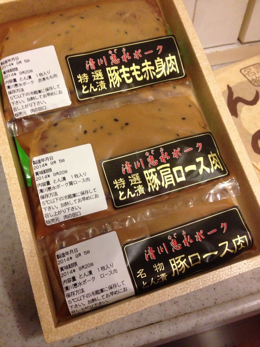 おみやげに、地元の名物という「とん漬け」の3個入りパック(税込み1400円)を購入。