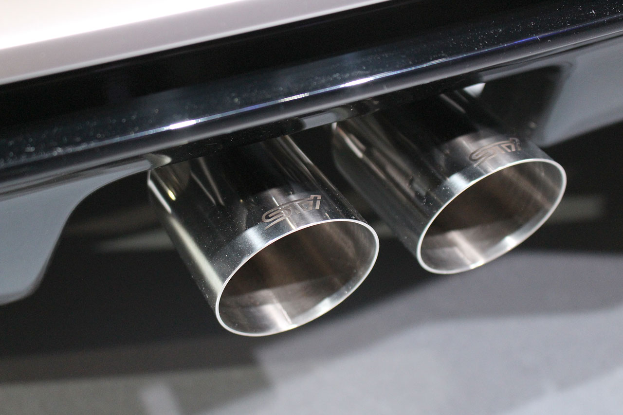 グリルと回したレイアウト、ある意味で現実的なインプレッサのセンター出しマフラーはSTIのロゴ入りだった…