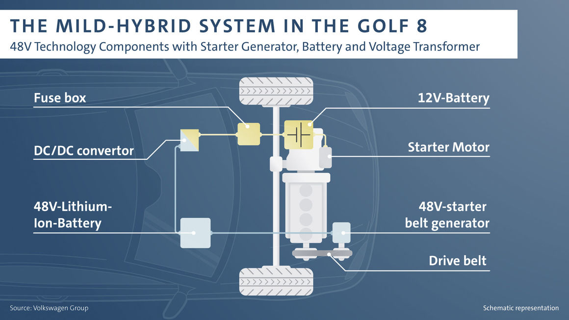 すでに話題となっておりますが、フォルクスワーゲンが次期ゴルフに48VのmHEV(マイルドエレクトリックハイブリッド)を採用することを発表(リリースはこちら:https://www.volkswagen-newsroom.com/en/stories/the-new-golf-with-48v-technology-5004)。あわせてmHEVシステムの構成ユニットを公開しております。