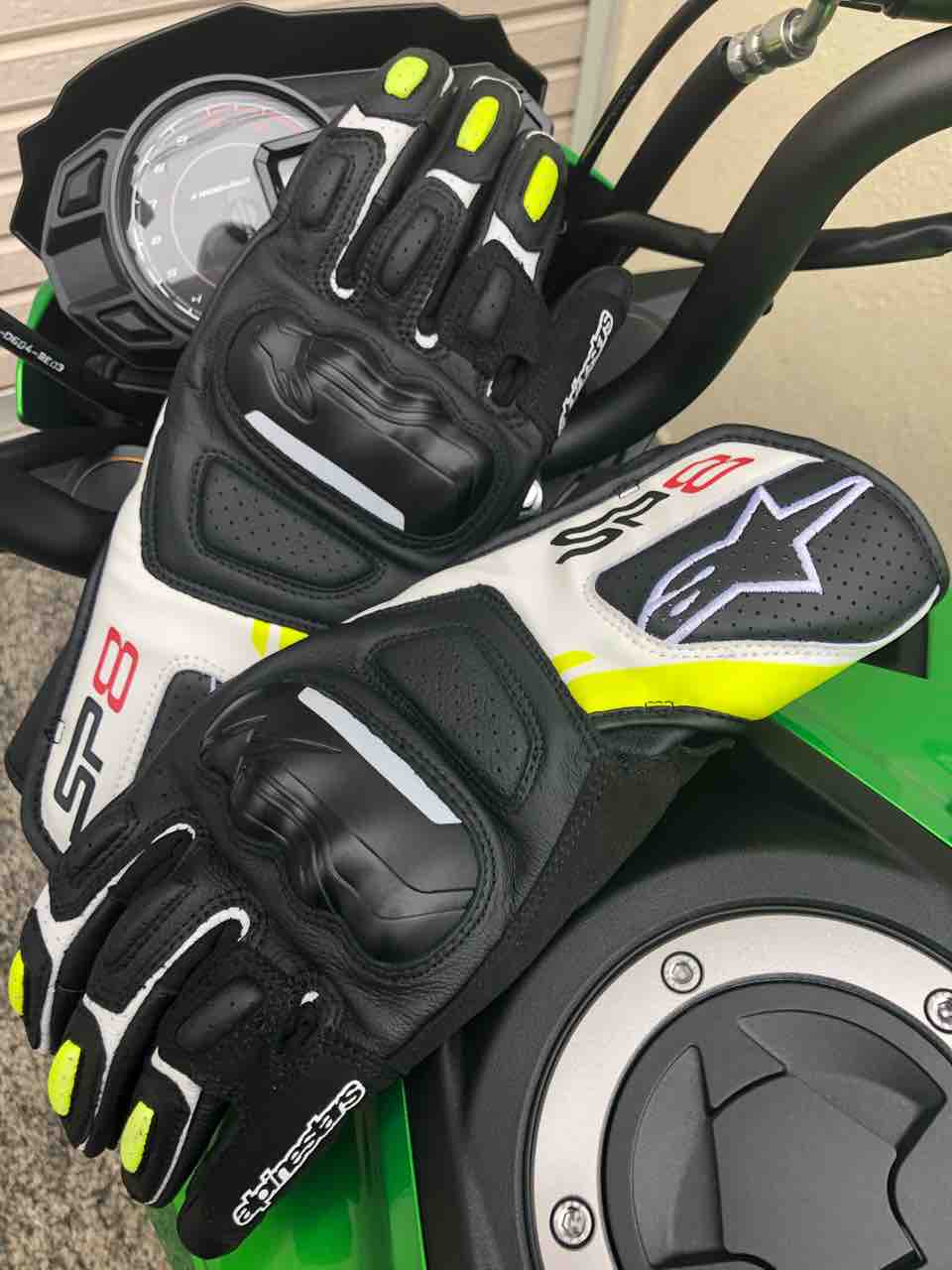 派手にお祝いという歳でもないのですが、誕生日というのを言い訳(?)に欲しかったスポーティなバイクグローブを購入。レースをやるわけではないので派手なグローブをする気はなかったのですが、とある占いサイトで見てみたところ誕生日カラーが黄色ということで、黄色のアクセントが入ったアイテムを探していて目に留まったアルパインスターズのSP-8を購入であります。一見、レース用ぽいナリですが、あくまでストリート仕様。スマホを操作できるようタッチパネル対応の素材が人差し指と親指の部分に貼られているというのもポイントでしょうか。春~秋仕様なので、しばらくは手にはめてニヤニヤするくらいしか使い道がないかもしれません(笑)