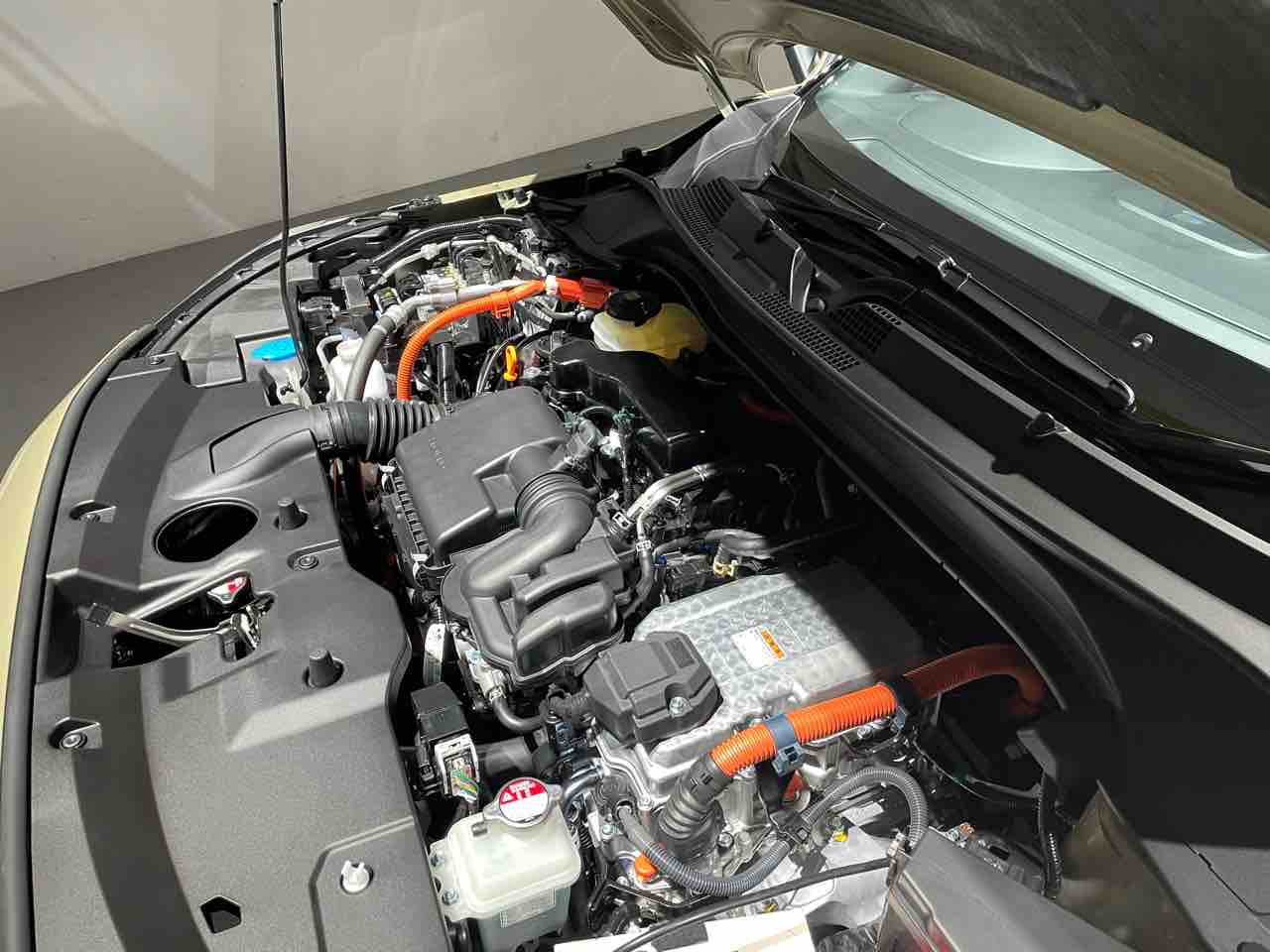 パワートレインについては1.5L NAエンジンと1.5Lエンジンを用いたハイブリッド「e:HEV」の設定で、ハイブリッドがグレード構成の中心になると発表されているのみで、くわしいスペックは未公表ではありますが、エンジンフードを開けて確認した印象では、おそらくフィット同等のスペックなのだろうな、と思う次第。つまり、燃費スペシャルではなく、ナチュラルな走り味を重視したハイブリッドになっていると想像するところであります。