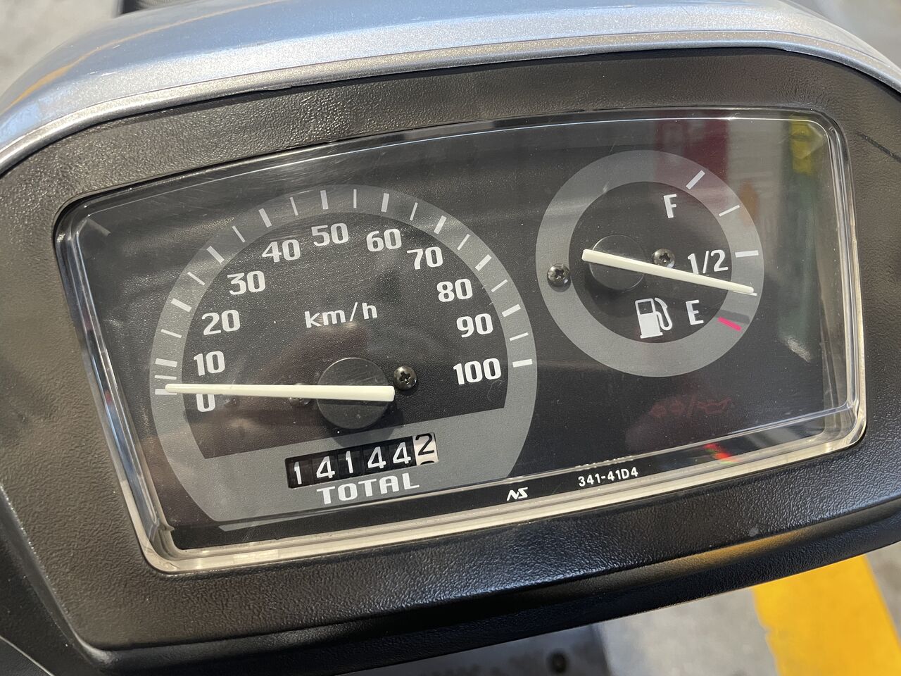 ちなみに、カタログスペックでの燃料タンク容量は6.0リッターで、燃料計の張りが残り1/4辺りを指している状態で、ガソリンは3.5リッターほど入りました。逆にいえば、この状態で2.5リッター程度は残っているわけで、燃費性能から計算すると余裕を見ても60km程度は走れるということになります。ご参考になれば幸いです。