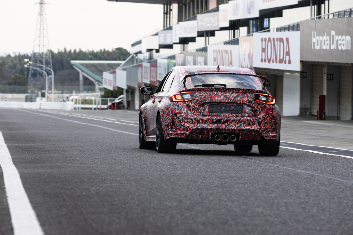トップに貼った画像では新型から見ると先代にあたるFK8型シビックタイプRもチラリと見えていますから新旧での比較をしていることが見て取れます。シビックタイプRについてはフィーリングは重要ですが、なにより数値で速くなっていることが至上命題でしょうから、新旧比較のタイムアタックなども実施していると予感させるワンカットといえましょうか。