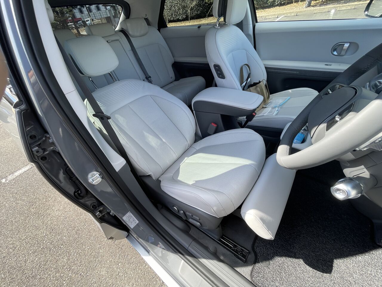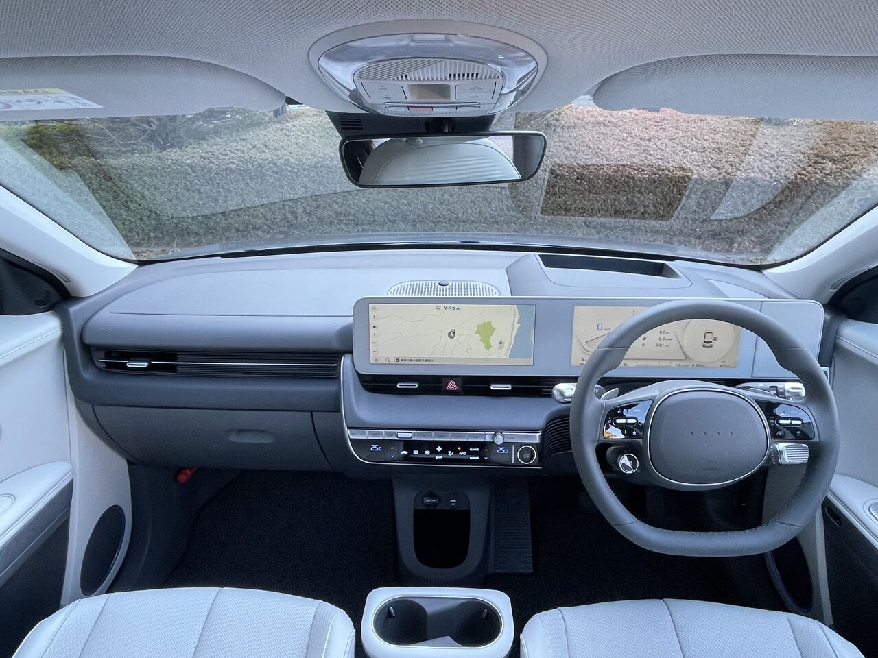 そんなアイオニック5、試乗車の内外装をiPhone撮影した画像もありますのでアルバム的に紹介しておきましょう。各画像の下に説明キャプションをつけておきますので、そちらもお読みください。