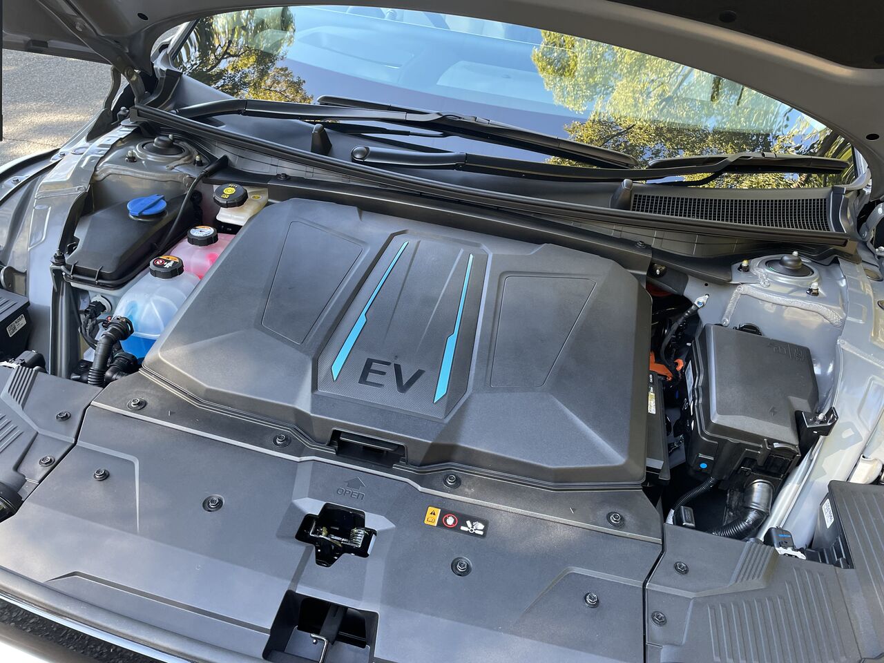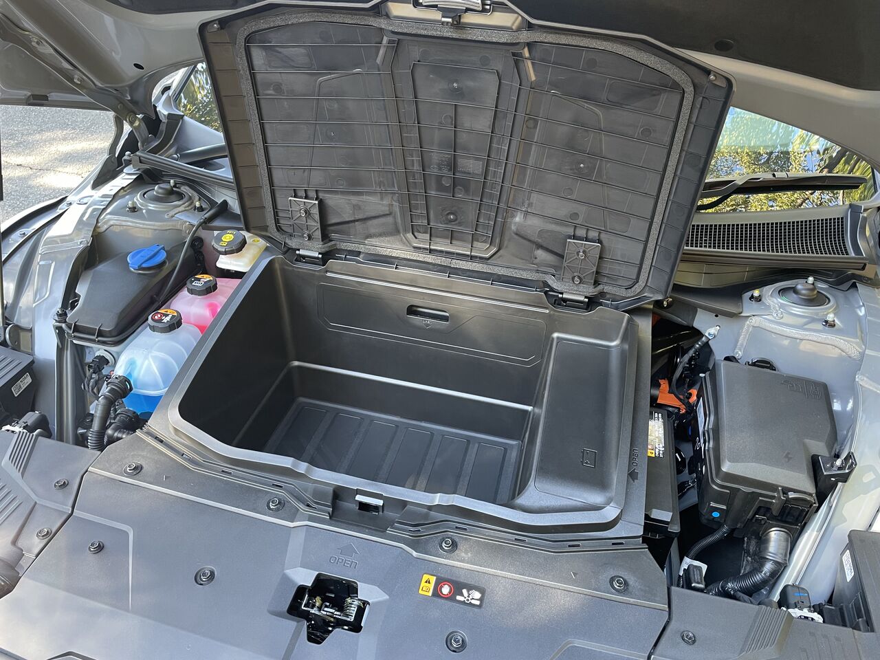 フロントフード下にもラゲッジボックスを用意。こちらの容量は57リッター
