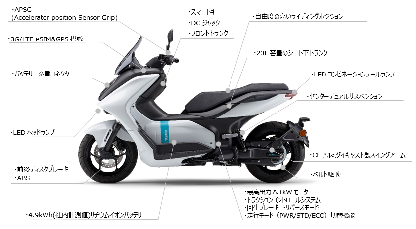 ヤマハ発動機株式会社は、車両固定式バッテリー搭載の出力8.1kWクラス電動スクーター「E01(イーゼロワン)」を日本、欧州、台湾、インドネシア、タイ、マレーシア向けに実証実験用モデルとして7月から順次導入します。「E01」は、原付二種クラスのスクーターとしての実用性と都市間の移動に適した走行性能を備える電動スクーターです。また、EVインフラやシェアリングビジネスなどの構築にあたって、顧客ニーズの把握やその他周辺ビジネスの可能性探求、新たな市場開拓などの実証実験用として、事業所、自治体、官公庁などに向けて導入するモデルです。なお、本製品の製造は、本社の組立工場で行います。