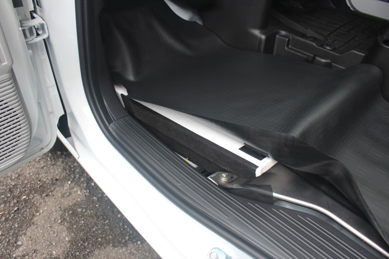ドアを開けると、たしかに運転席しかないのを確認。もともとN-VANは運転席以外はフラットに格納できるのがセールスポイントですが、さらに割り切ってシートを取っ払うことで積載性能をギリギリまで向上させているのが本グレードのキモ。しかして運転席については仕事場として不満なきようクッション性や乗降性をバランスさせた出来映えとなっているのも見逃せないところでは?
