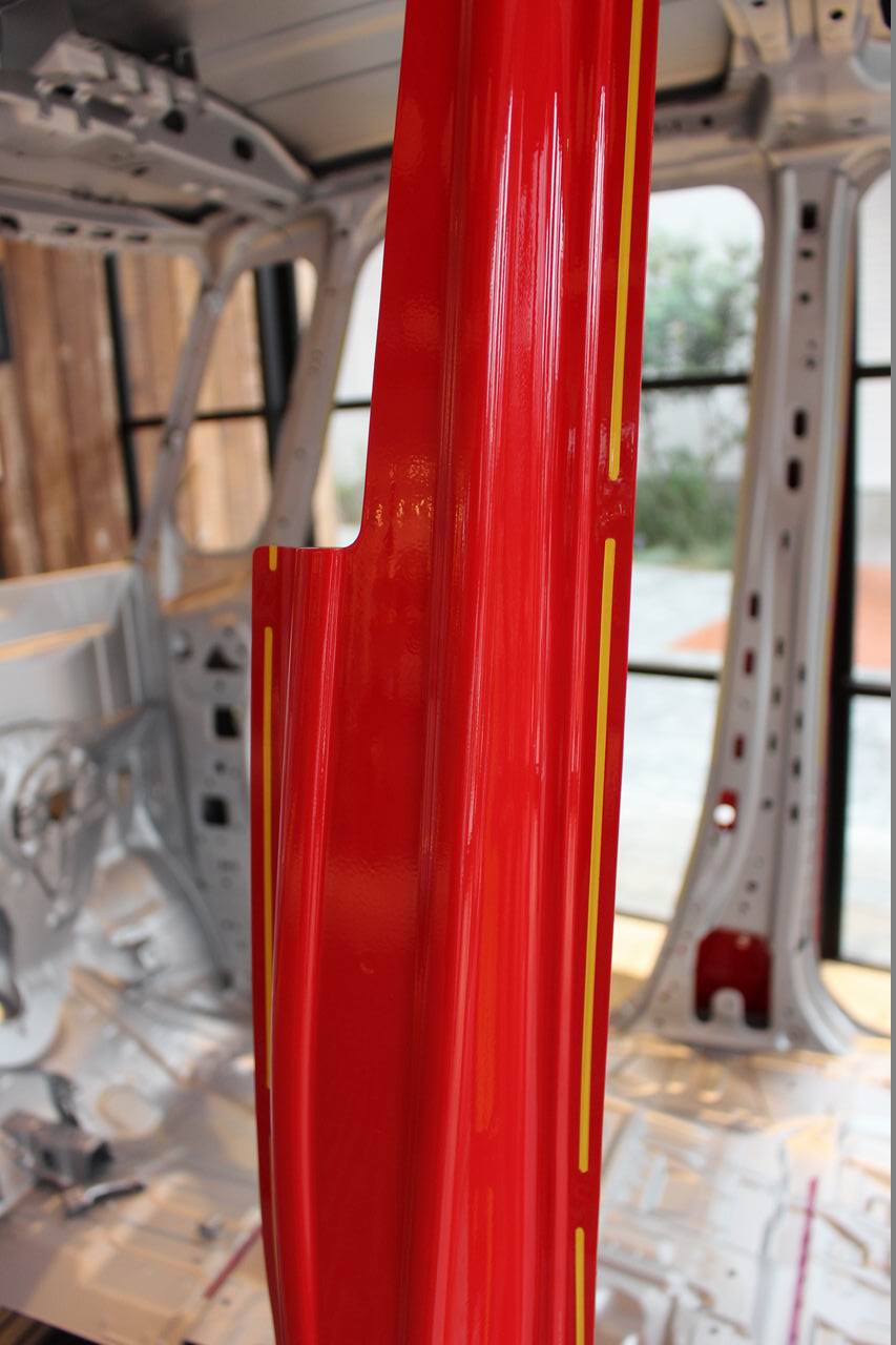 そして、このBピラーをはじめ、ドア開口部の溶接にローラー電極を用いた「シーム溶接」を採用しているのも、新型N-BOXのボディにおけるトピック。Aピラーあたりの溶接を見ていると、殆どがスポットで、ごく一部にシームを使っているといった感じですが、Bピラーについては、かなり広範囲にシーム溶接を採用しているのは好印象。ハイテンで強度を確保、シーム溶接で剛性をアップといったイメージで捉えると妥当でしょうか。